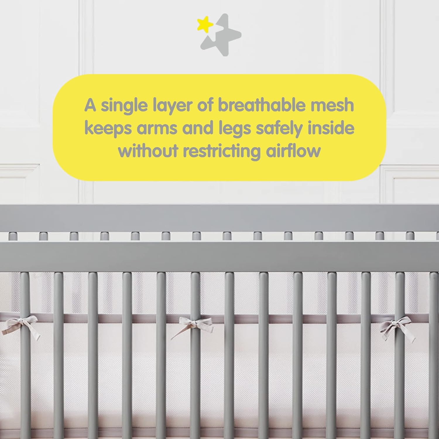 Introducing the BreathableBaby Breathable Mesh Liner for Full-Size Cribs, designed to provide a safe and comfortable sleeping environment for your little one. Made from classic 3mm mesh, this innovative crib liner promotes airflow while preventing your baby from getting stuck between crib slats. The soft, white fabric seamlessly blends with any nursery decor, ensuring a stylish look without compromising safety.